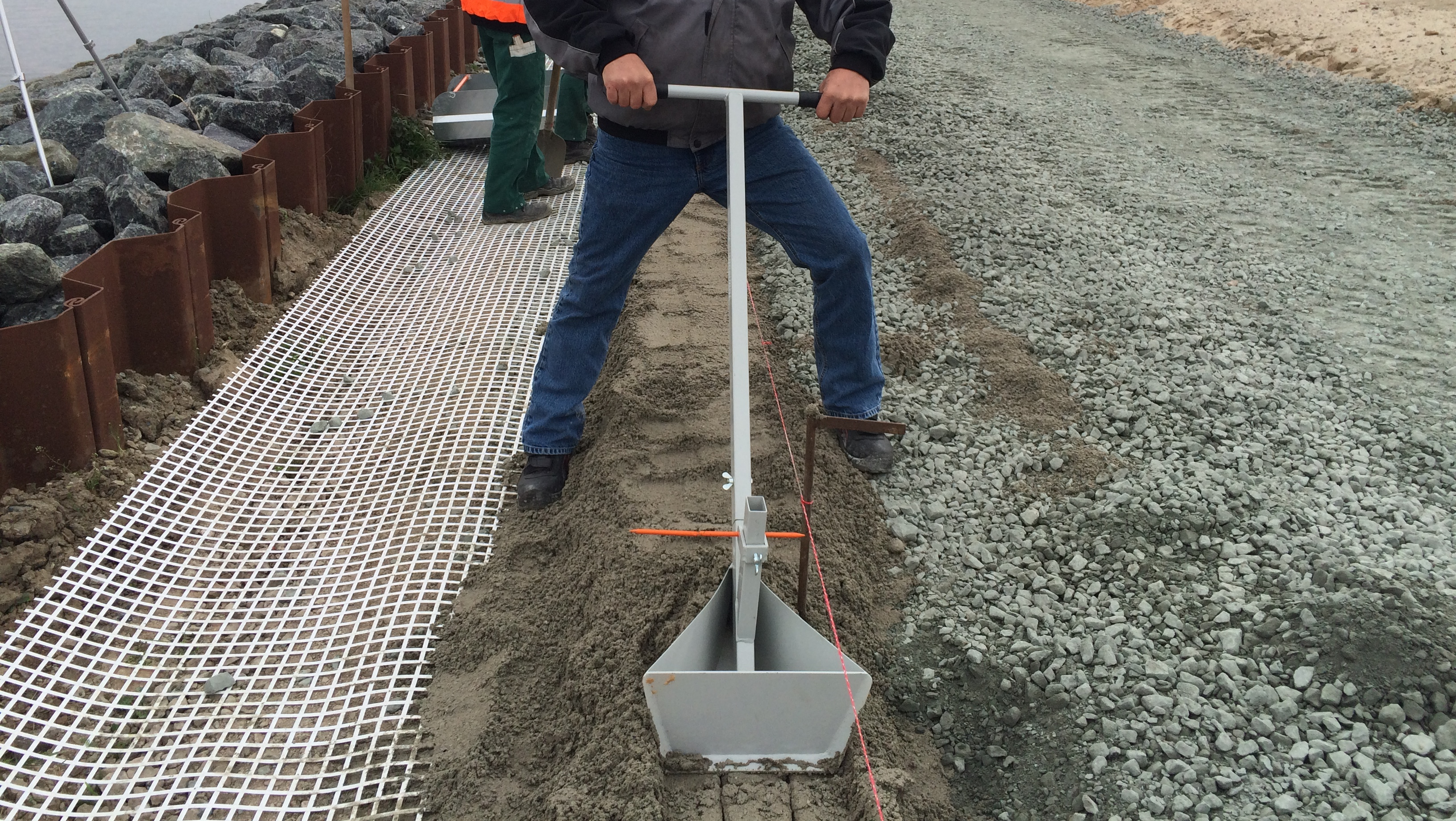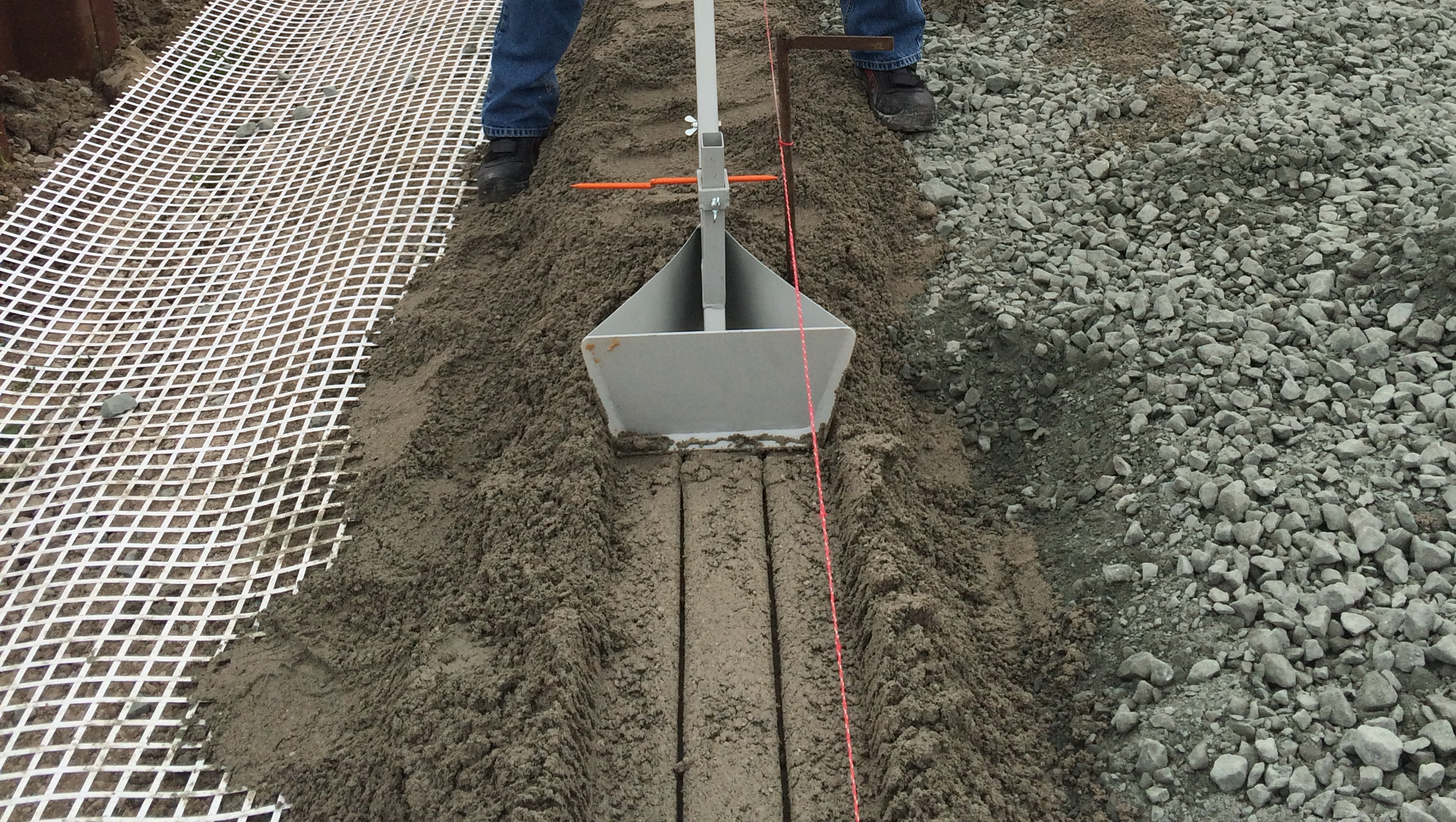 Prepares the concrete bed simply by pulling the adjustable height indicator along the string.