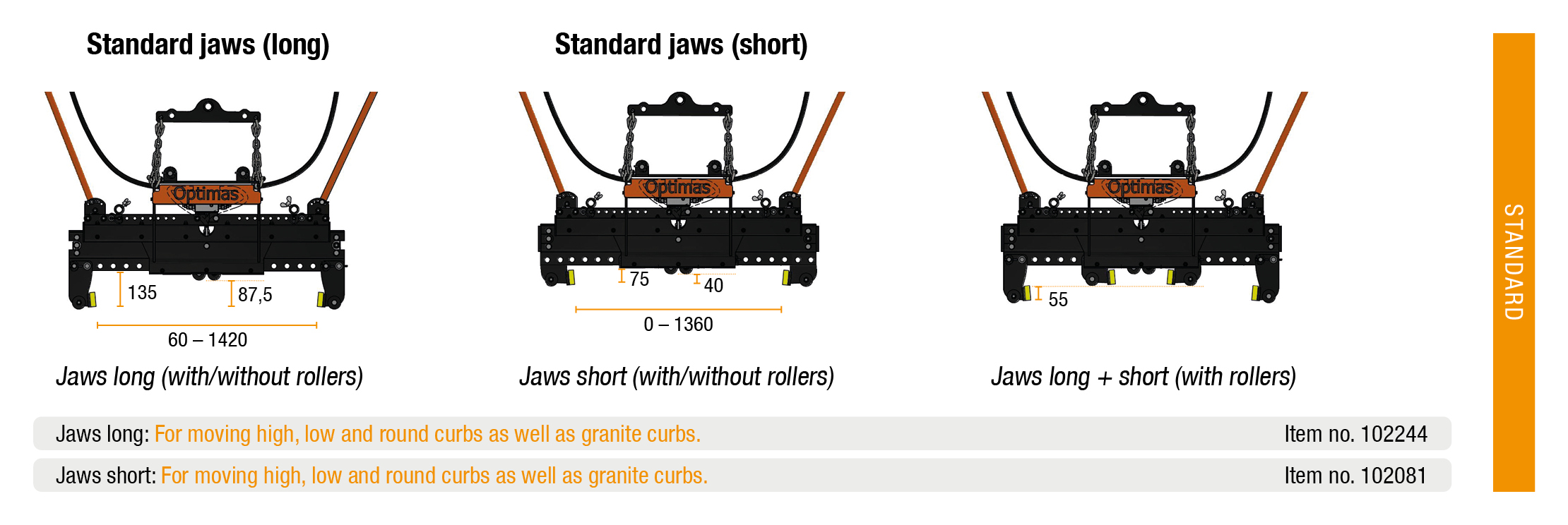 - 2 sets of jaws (e.g. for setting curbs, block steps and various slabs):