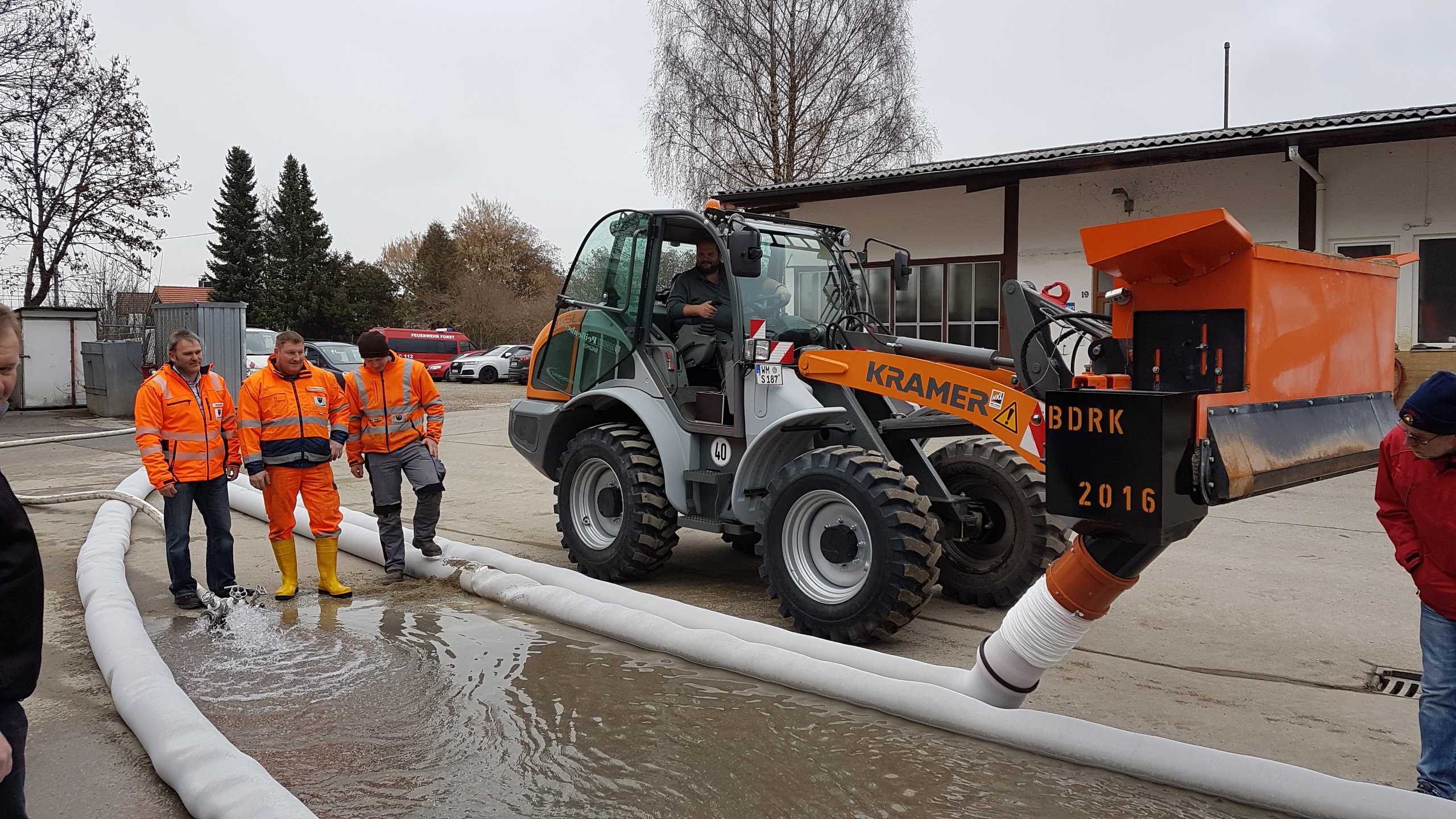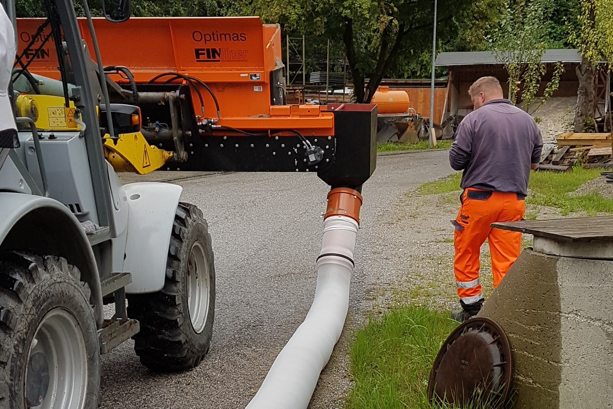 bremenports GmbH is responsible for port construction and operation as well as the marketing of the ports in Bremen and Bremerhaven. This also includes the tasks for flood protection. There are a very large number of different openings/passages in the harbour, embankment and dyke facilities, which can pose a risk in the event of a storm surge. Green dyke systems or sheet piling also give the floods a surface to attack. The Fineliner was tested under real conditions during a major disaster exercise with the fire brigade, THW and bremenports. ‘It turned out that the Finliner is a real help and practical support for such operations,’ summarises Christian von Deetzen, team leader for dykes at bremenports. The speed at which the Finliner material distribution bucket works is extremely helpful. The concept of filling and transporting is also a successful one. Another effect of using the Finliner is that fewer personnel are required for the work. This can then help elsewhere. All in all, the Finliner has proved its worth here and with it you are well prepared for flood situations.