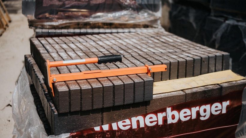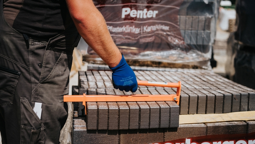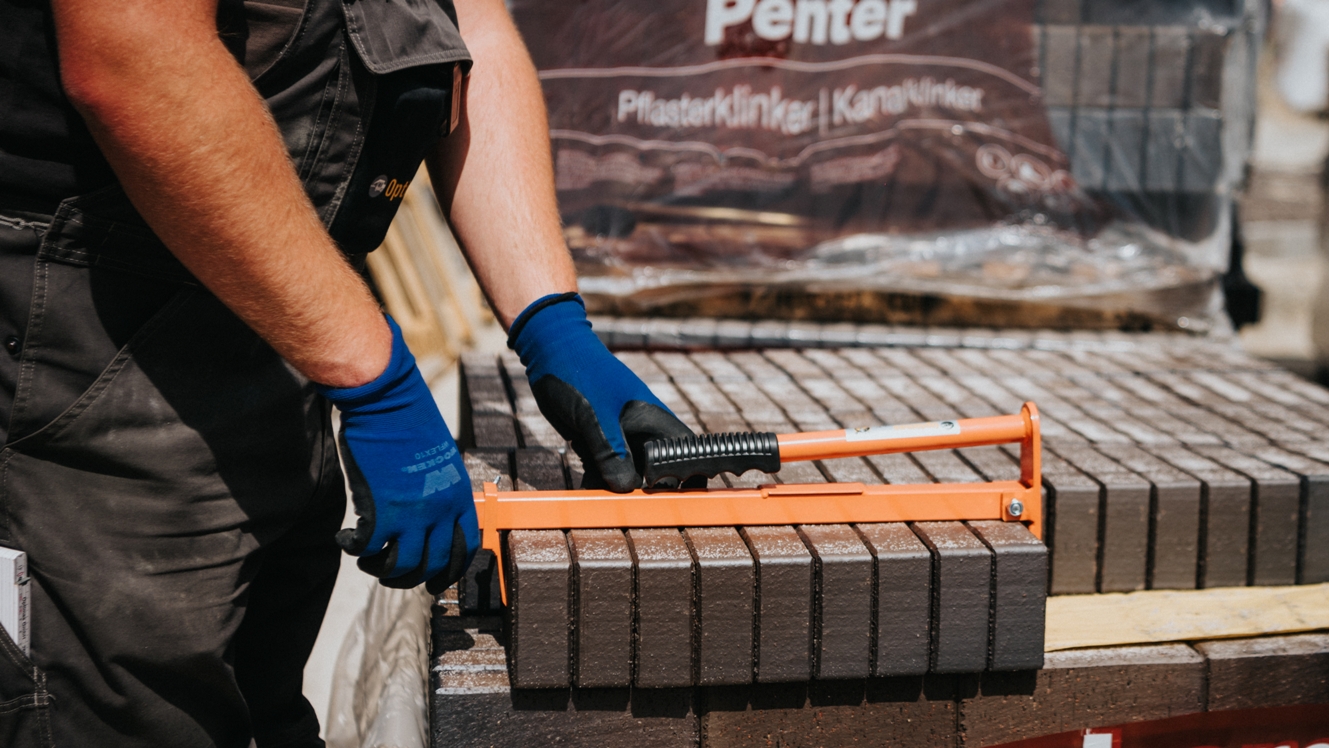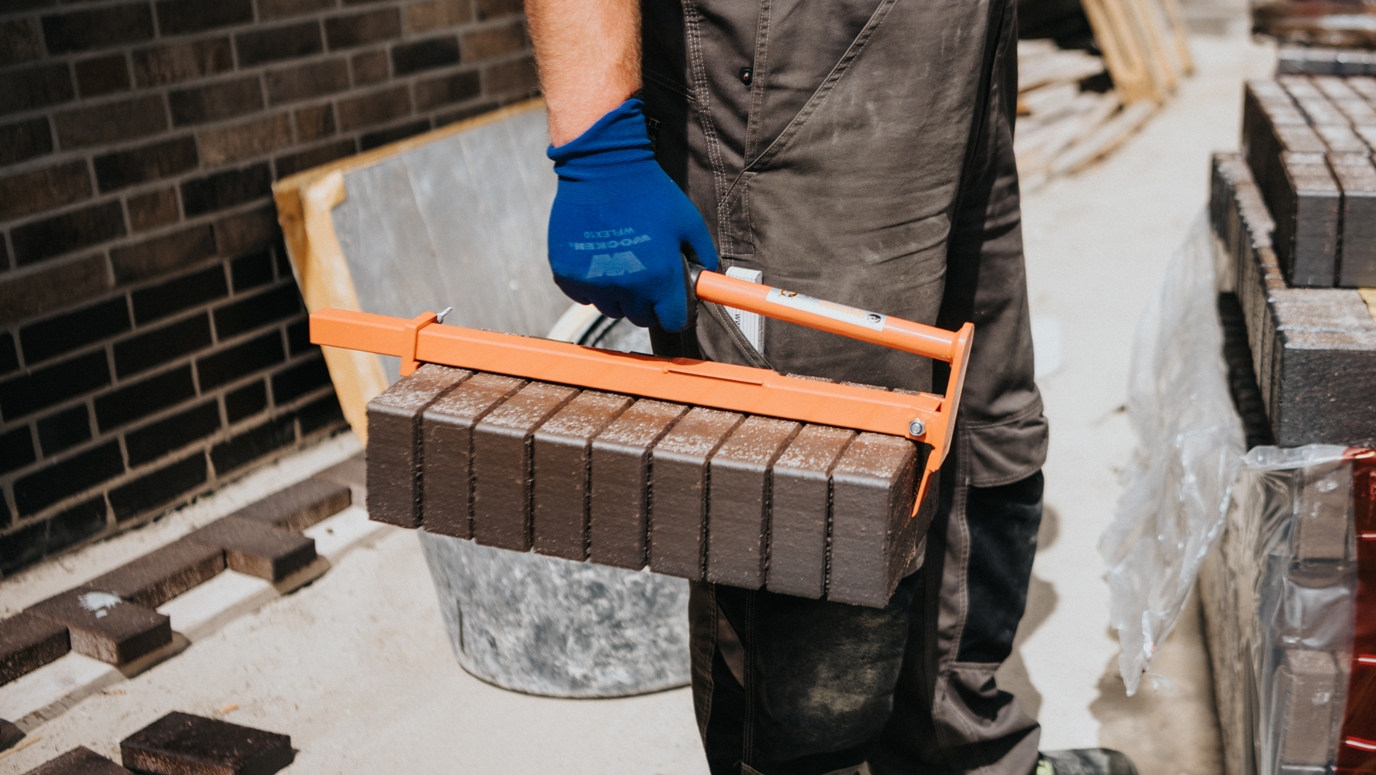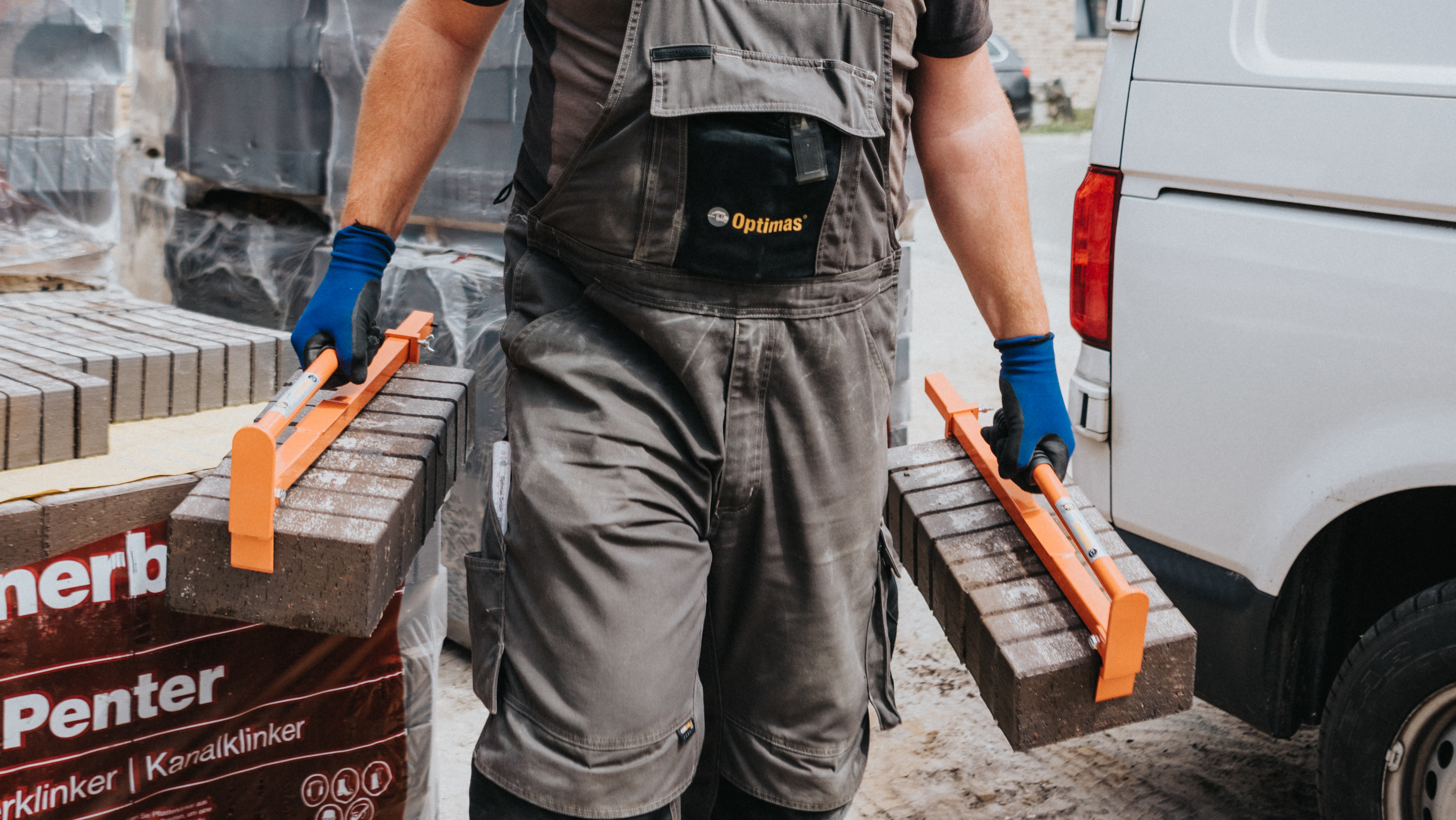 Réglable, elle permet de transporter aisément quelques pavés en béton, klinker ou briques silico-calcaires.