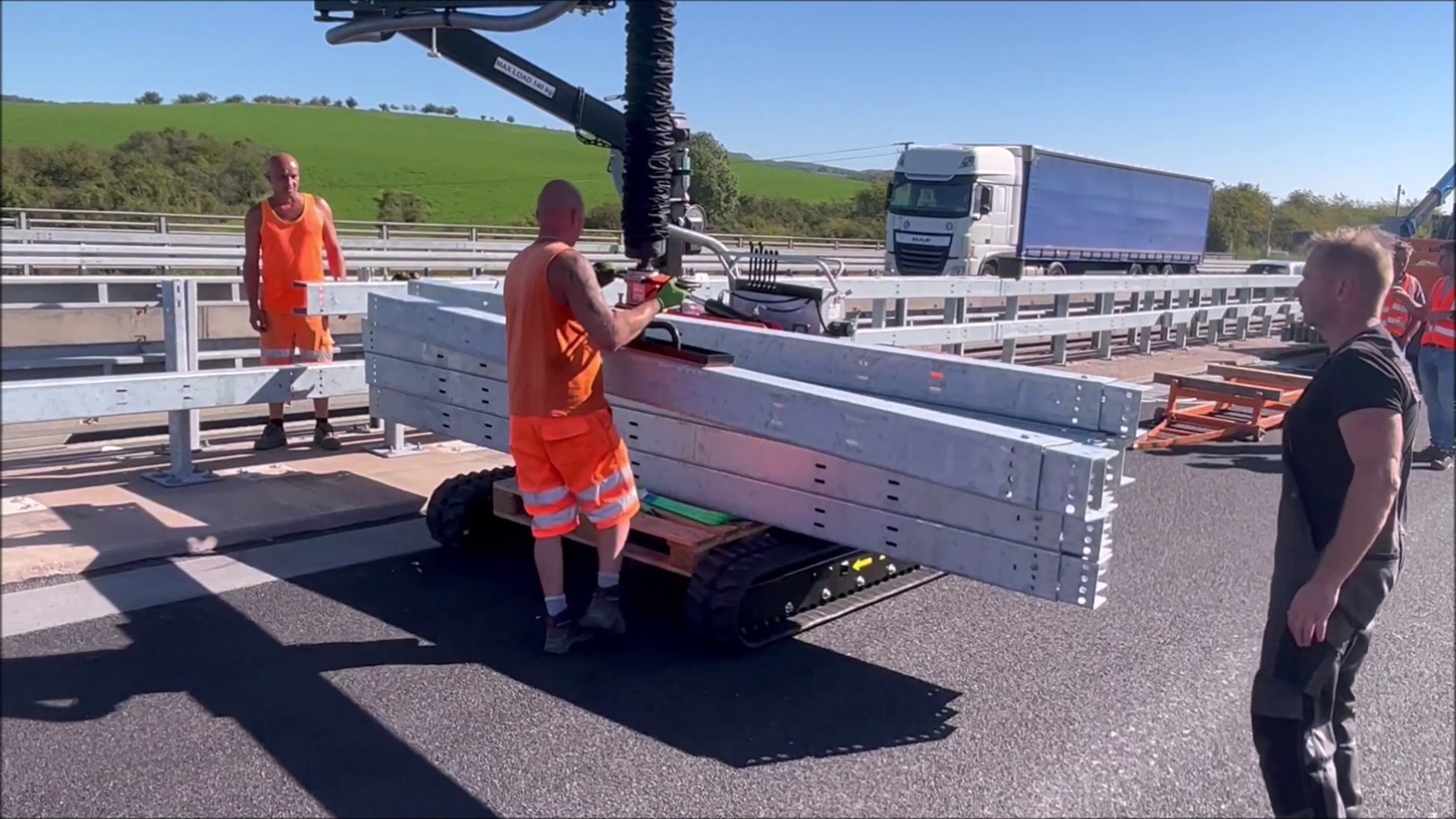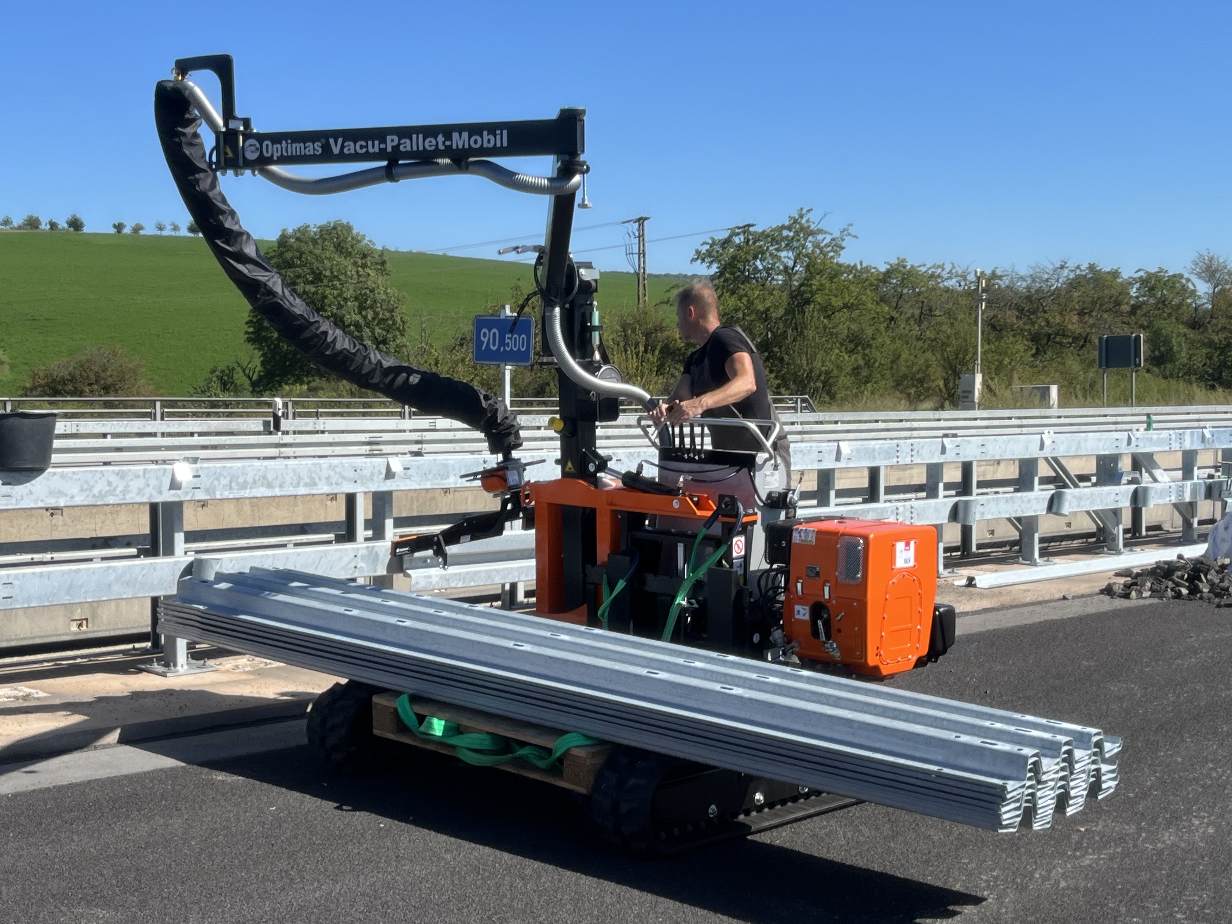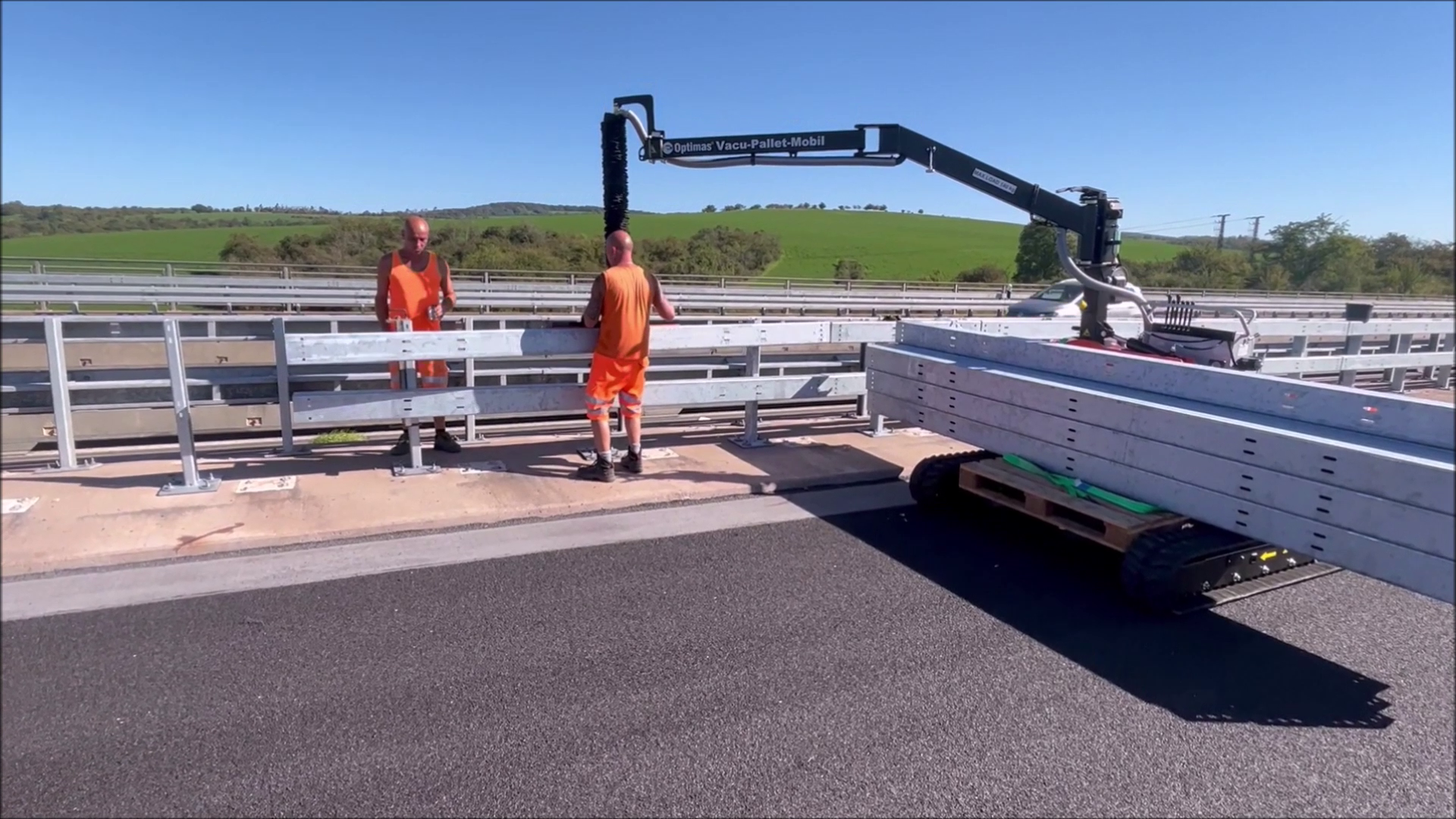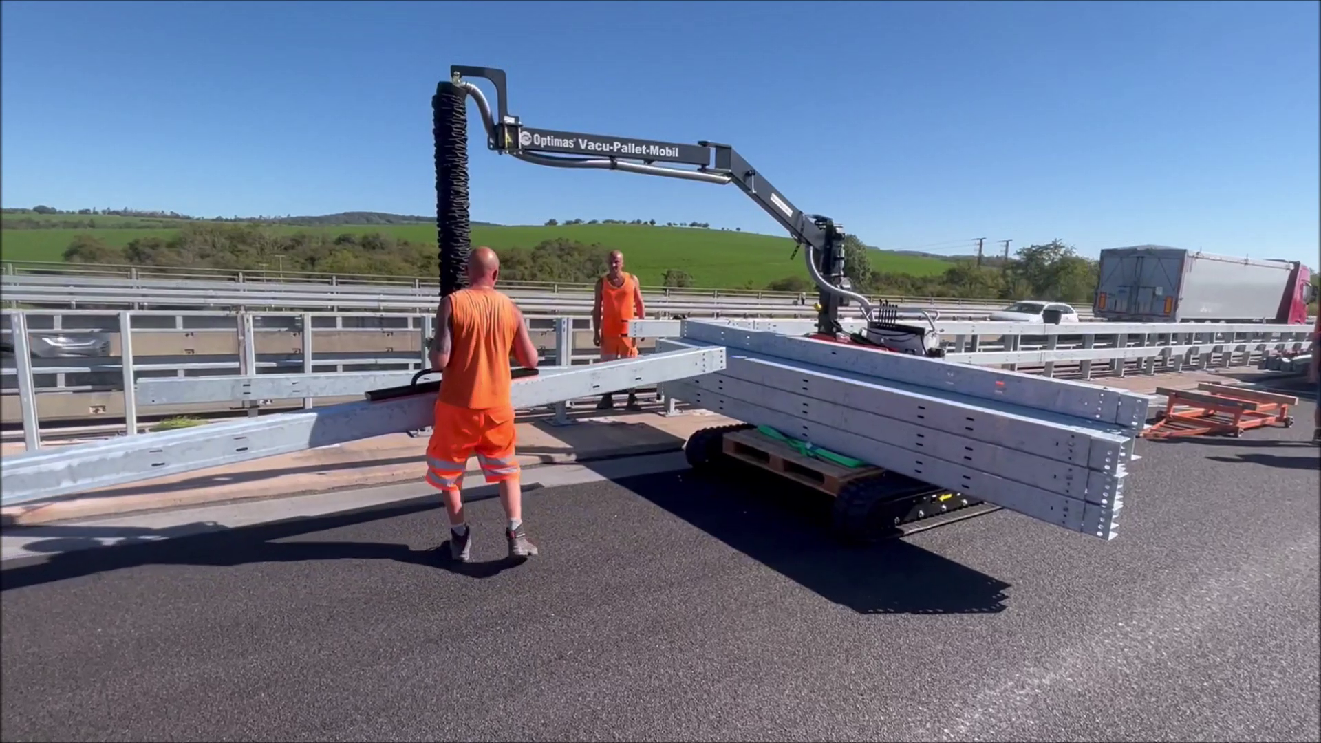 Montage de glissières de sécurité avec le Vacu-Pallet-Mobil Optimas Le Vacu-Pallet-Mobil Optimas est idéal pour soulever des éléments pesant jusqu'à 140 kg (200 kg en option) grâce à la technique de levage par aspiration intégrée. NOUVEAU : Grâce à l'utilisation de plaques d'aspiration spéciales, le Vacu-Pallet-Mobil est désormais également idéal pour le montage de glissières de sécurité. Tous les systèmes de glissières de sécurité courants composés de - profil A (pièce n° 1.00) ou - profil B (pièce n° 2.00) et de - profilés en caisson (pièce n° 25.00 et/ou 33.00 et 36.00) peuvent être montés à l'aide du Vacu Pallet Mobile d'Optimas. Les systèmes les plus divers sont construits à partir de ces éléments, comme par ex : Super Rail, Super Rail Eco ; Mega Rail, Easy Rail, etc.Download Flyer: hier