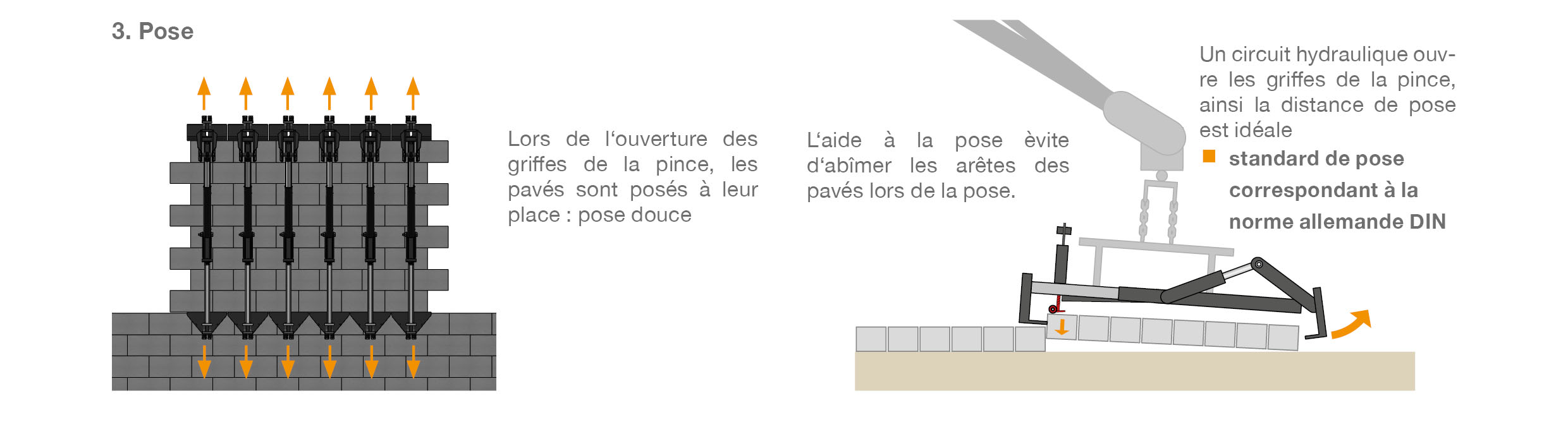 - préhension et dépose des pavés avec beaucoup de ménagement