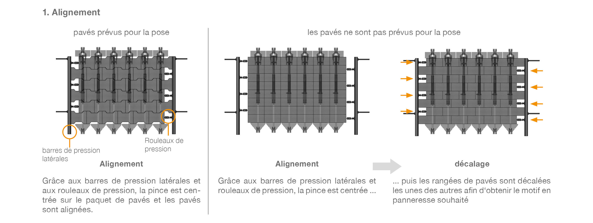 - Elle positionne même les pavés à taquets suivant le motif de pose