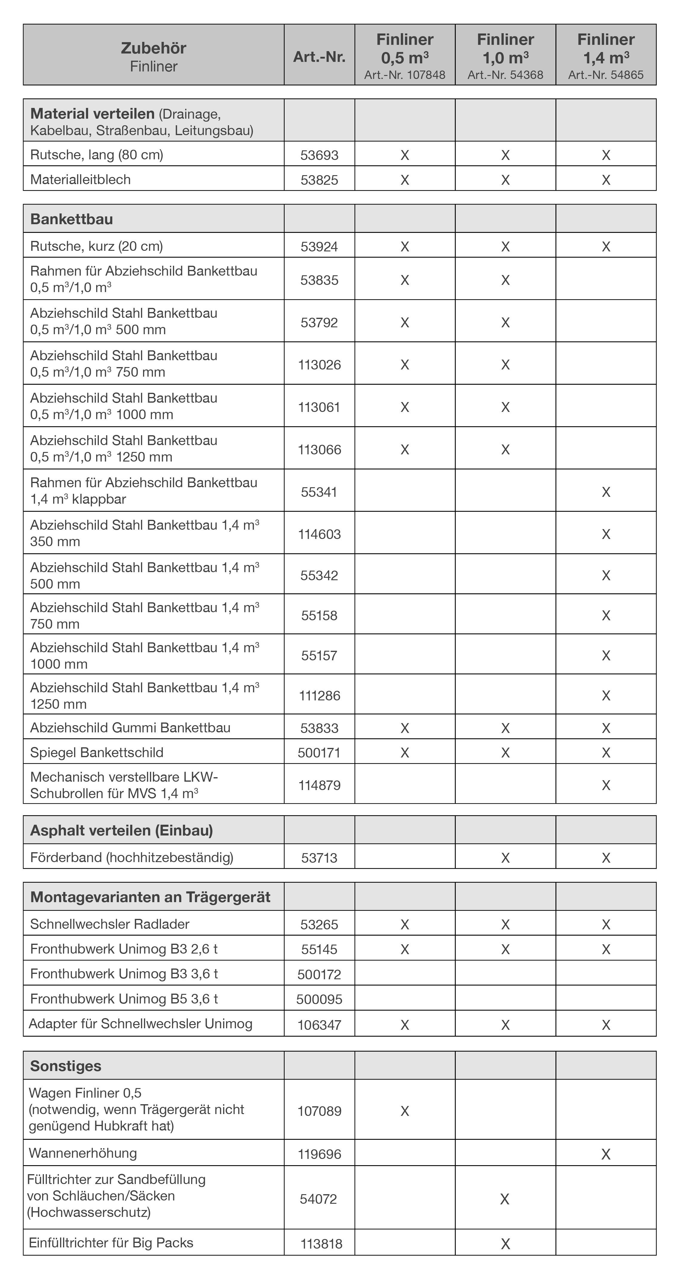 | Einfüllbreite: | Finliner 0,5 m³: 1,83 m / Finliner 1,0 m³+1,4 m³: 2,6 m |