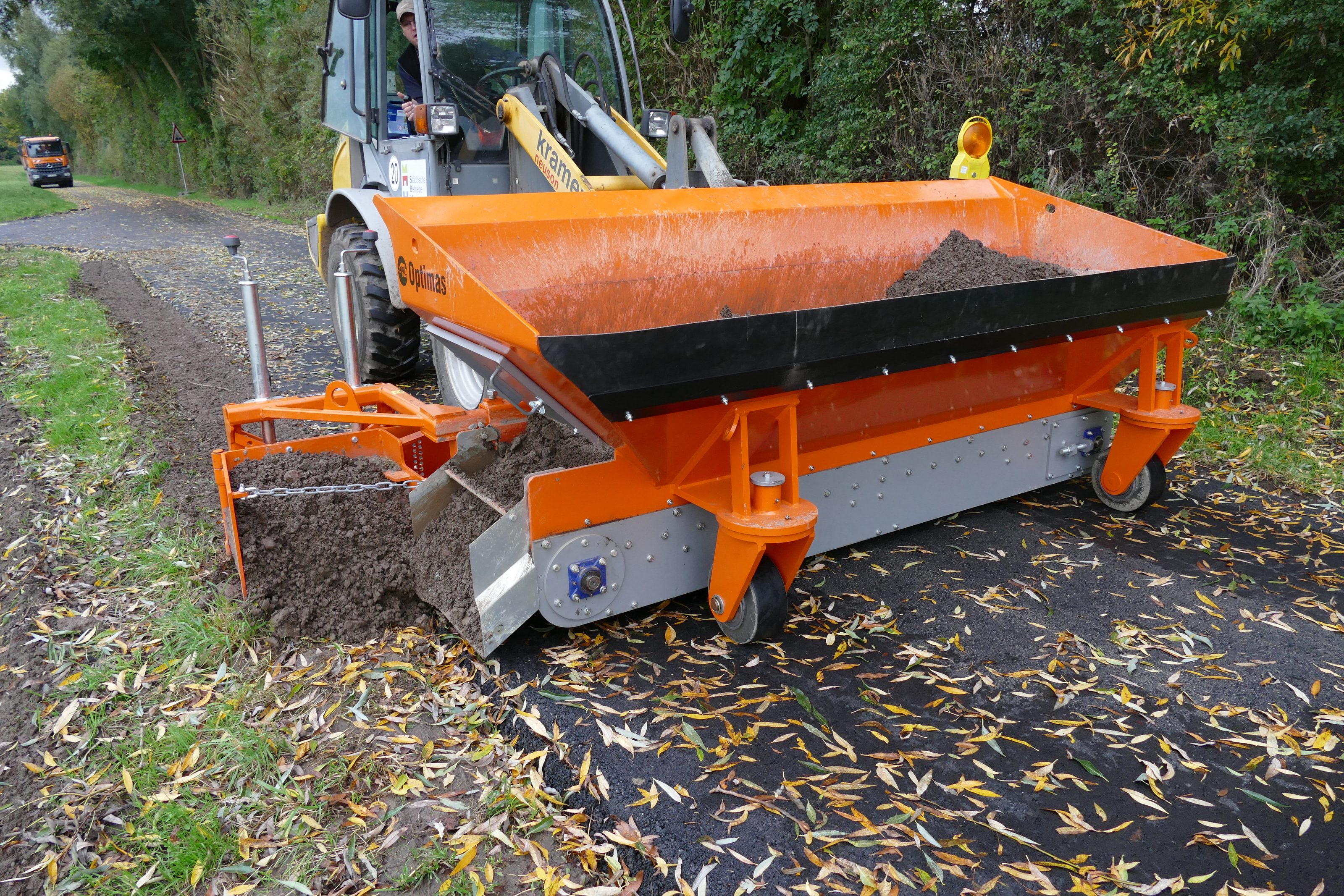 Beton, Asphalt, Schüttgüter (Sand, Splitt, Schotter, Mutterboden, Salz, Hackschnitzel, Kiesel u. a.) werden mittels Förderbandes seitlich ausgeworfen. Die Materialmenge kann exakt durch die Geschwindigkeit von Förderband und Fahrgeschwindigkeit dosiert werden. Wobei die Fahrgeschwindigkeit beim Befüllen von Big Bags nicht relevant ist. Der Finliner von Optimas ist die günstige Alternative zu Schwenklader oder Seitenkippschaufel.