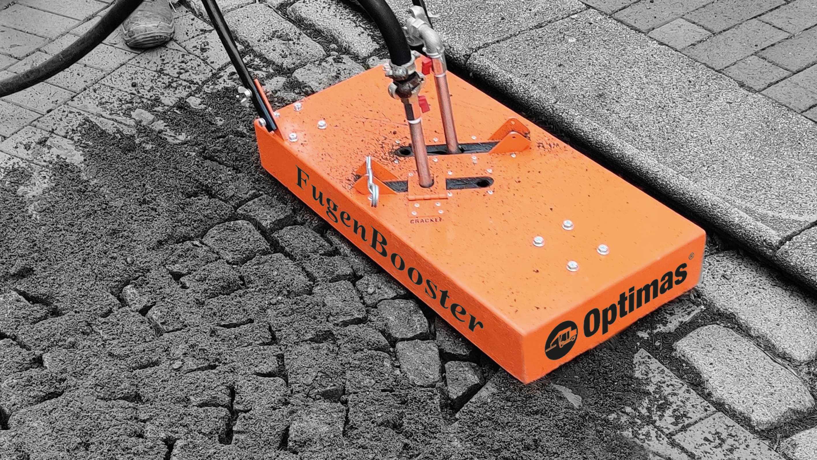 Der Optimas FugenBooster ist ein speziell entwickeltes Fugenausräumgerät für die Sanierung von Pflasterflächen, Gehwegen, Plätzen und historischen Anlagen in Natur- und Betonstein. Einfaches Ausblasen der Pflasterfugen nur mit Druckluft, ohne dass Passanten oder Fahrzeuge vom ausgeworfenen Füllmaterial getroffen werden! Vorteile: