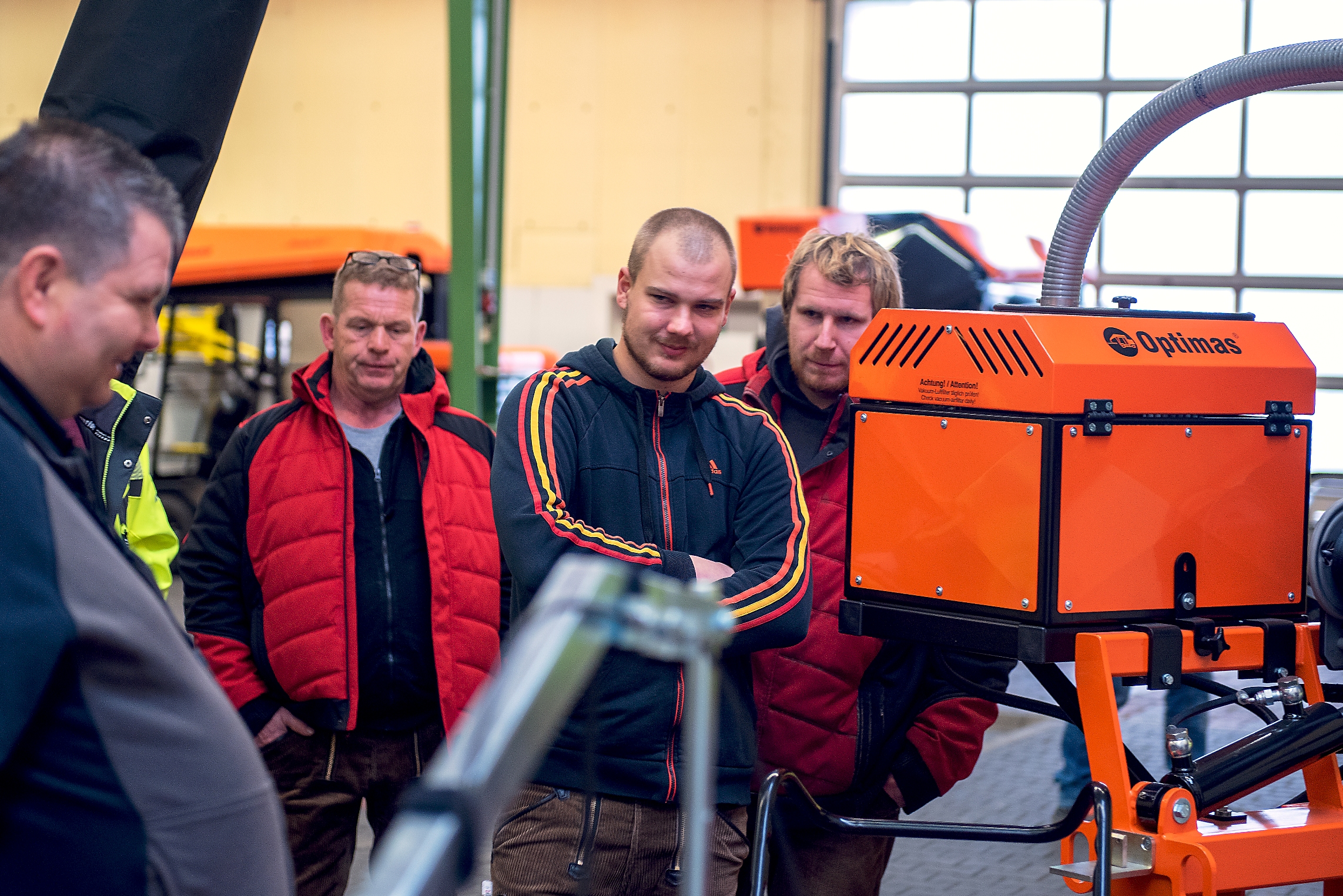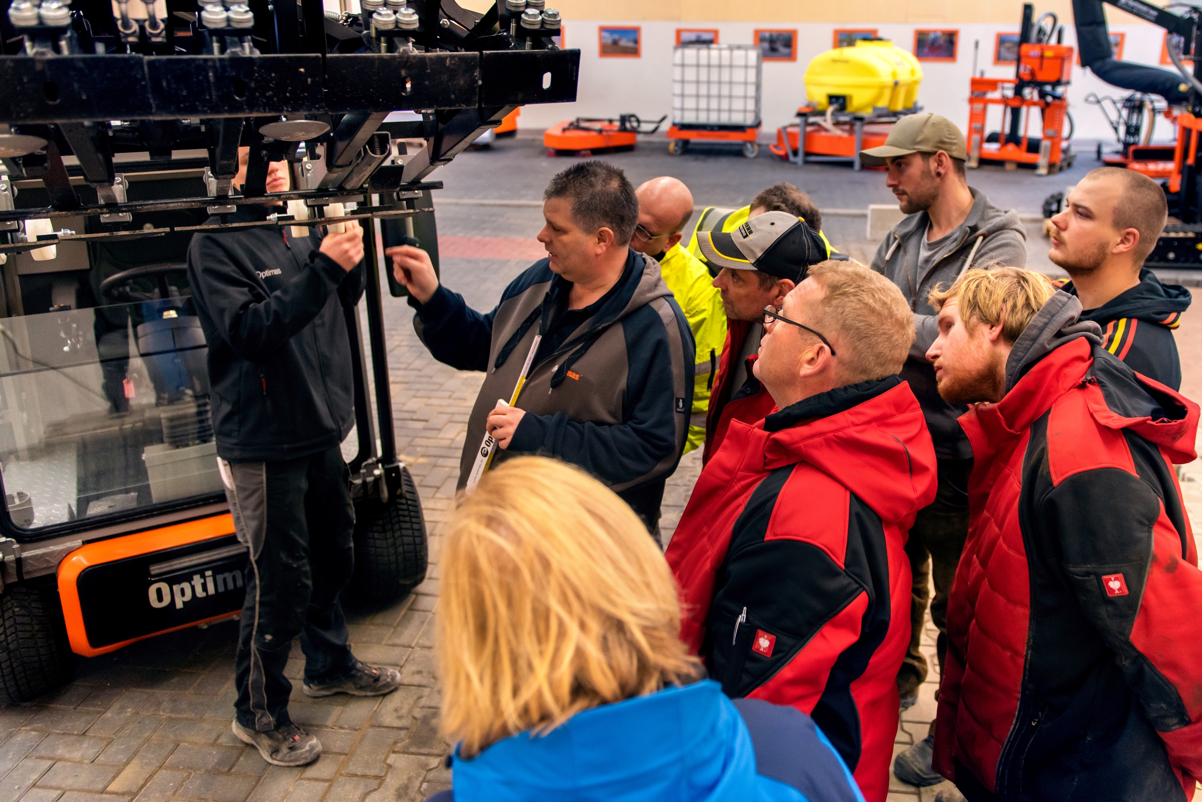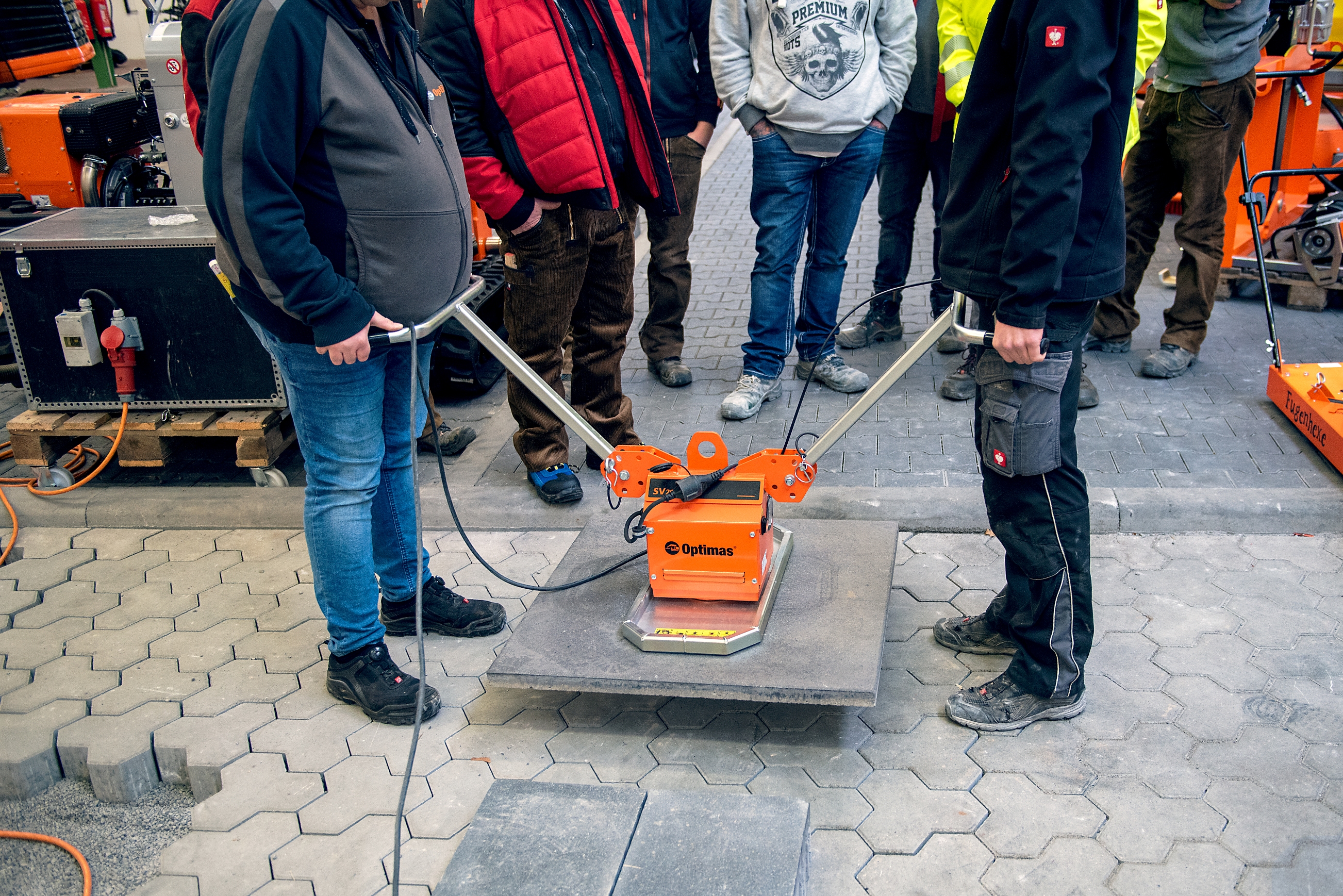 Fokus liegt in Bedienung und Einstellung der Pflasterverlegemaschine und Pflastergreifer. Bei Bedarf / Interesse werden weitere Optimas Systeme wie z.B. Planum erstellen; Randeinfassung erstellen, Pflasterfläche abstreuen und einsanden den Teilnehmern erklärt und jeder kann probieren/testen.