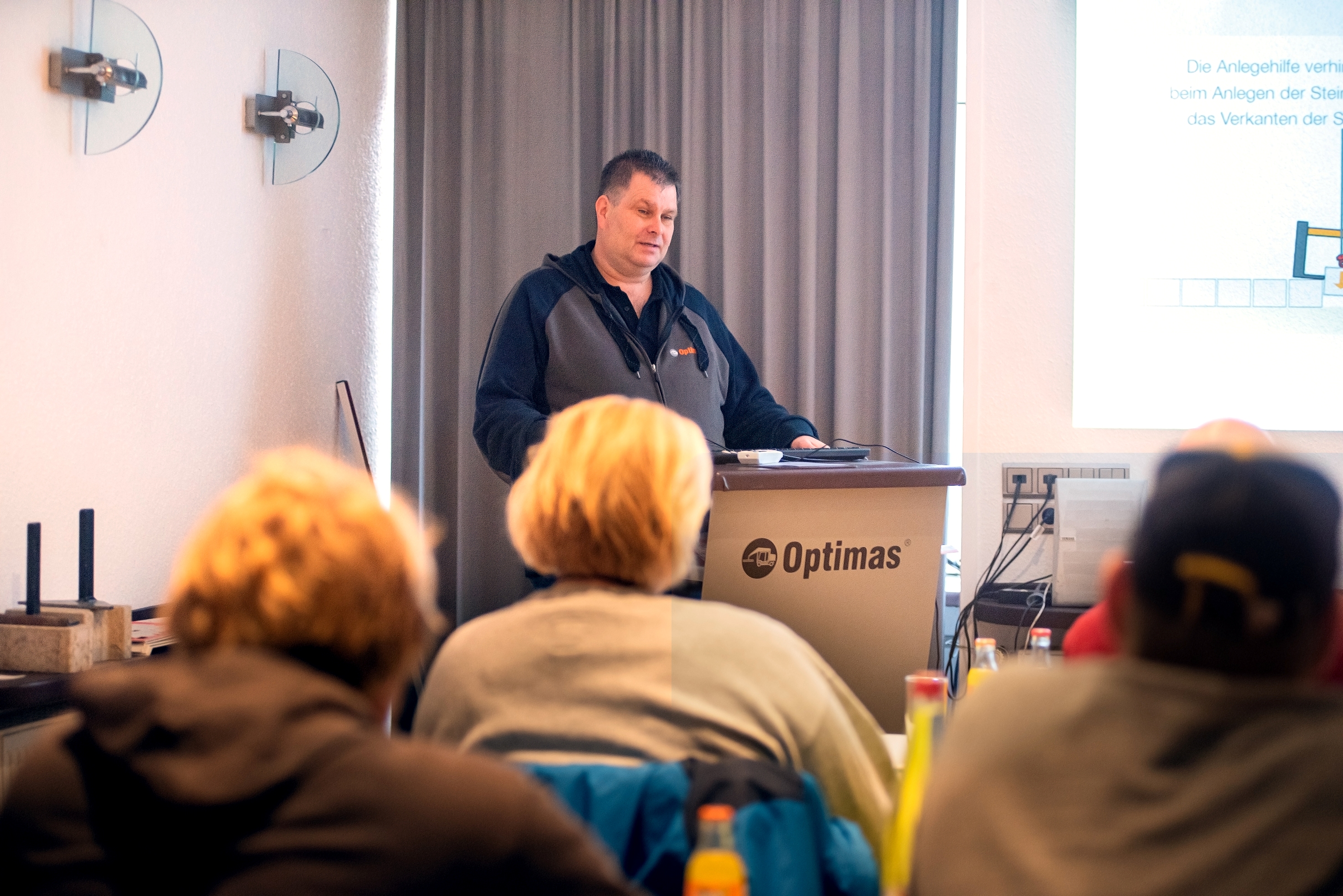 Theoretischer – u. praxisbezogener Lehrgang. Baustellenorganisation und die Bedienung und Einstellung der Pflasterverlegemaschine und Pflastergreifer werden erklärt und trainiert. Bei Bedarf / Interesse werden weitere Optimas Systeme wie z.B. Planum erstellen; Randeinfassung erstellen, Pflasterfläche abstreuen und einsanden den Teilnehmern erklärt und jeder kann probieren/testen.